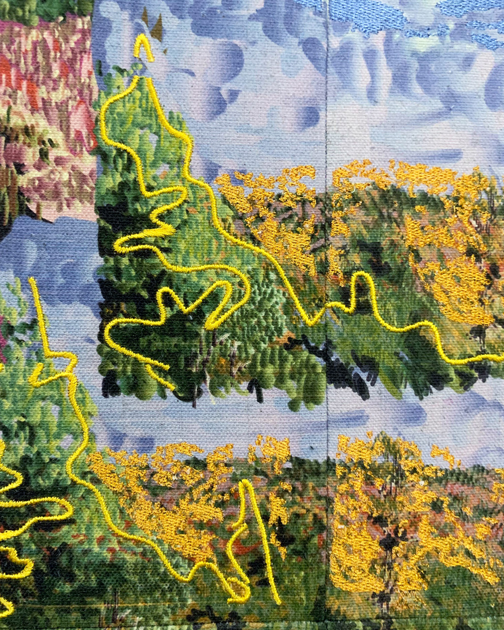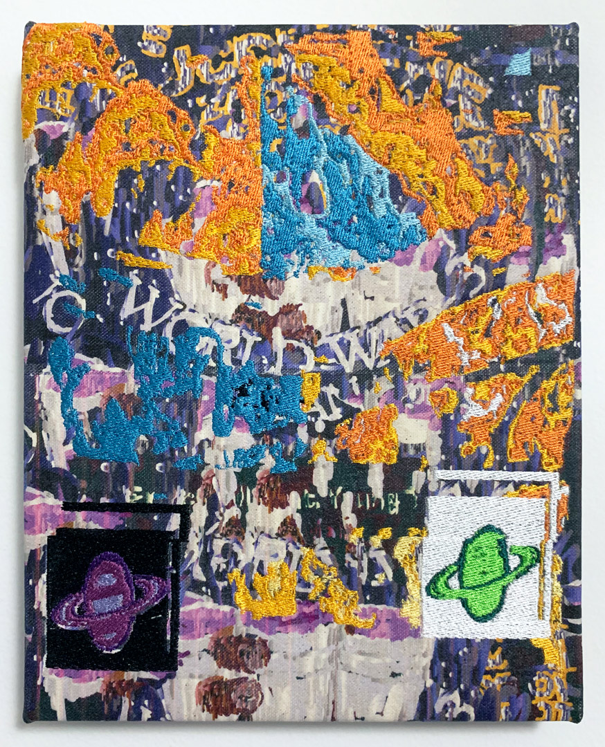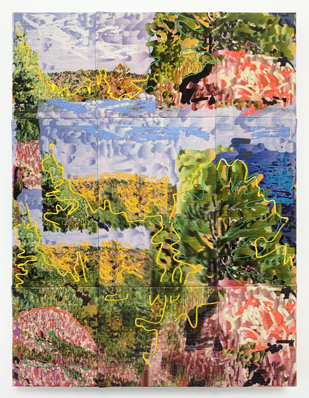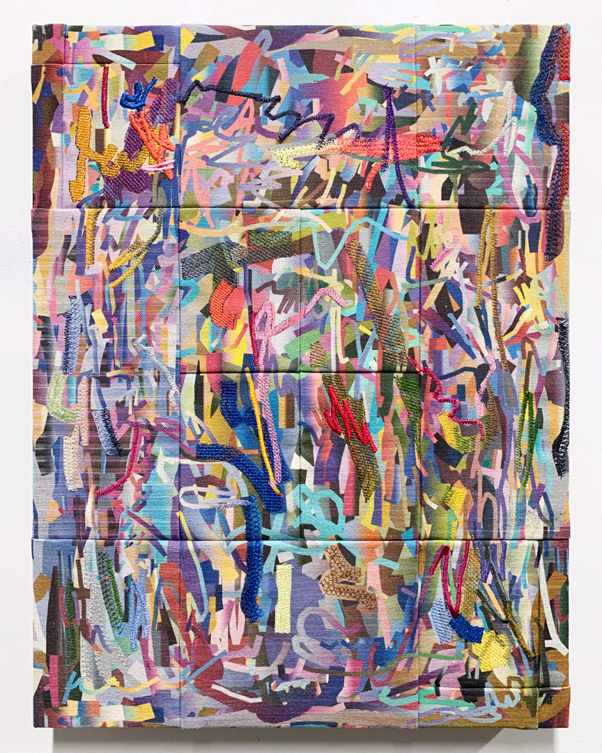 Inkjet and embroidery on canvas