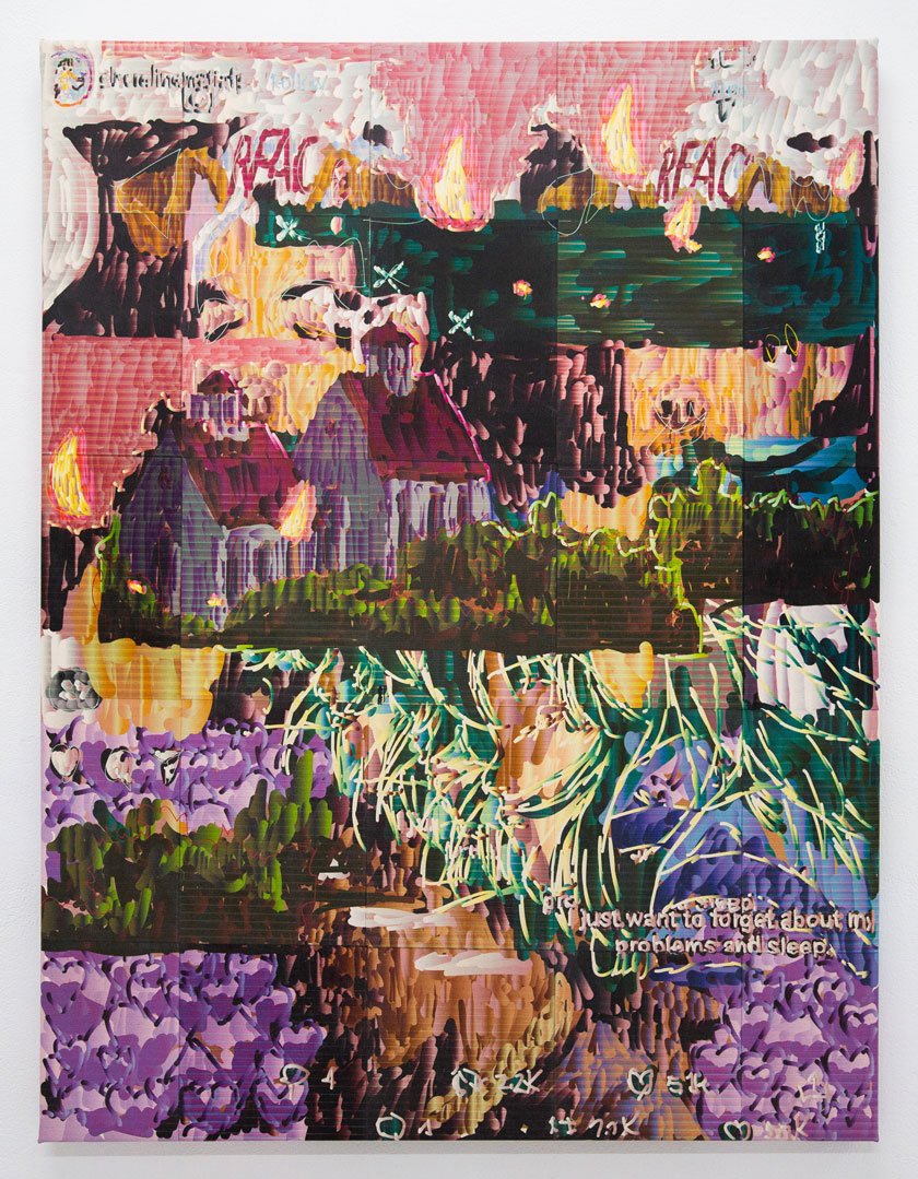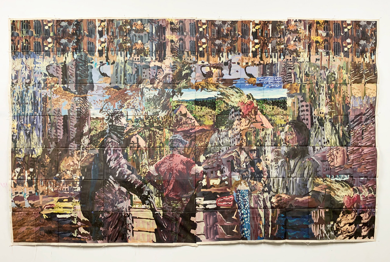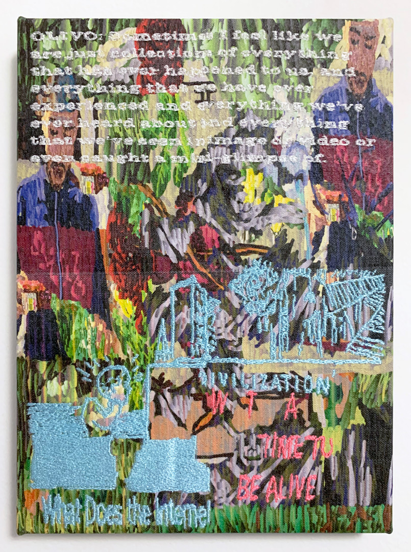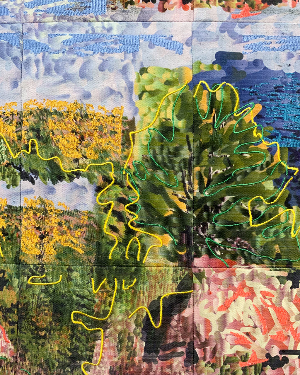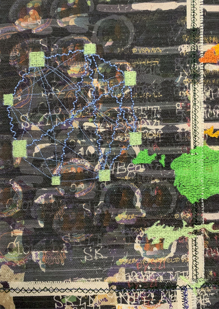 Inkjet and embroidery on canvas