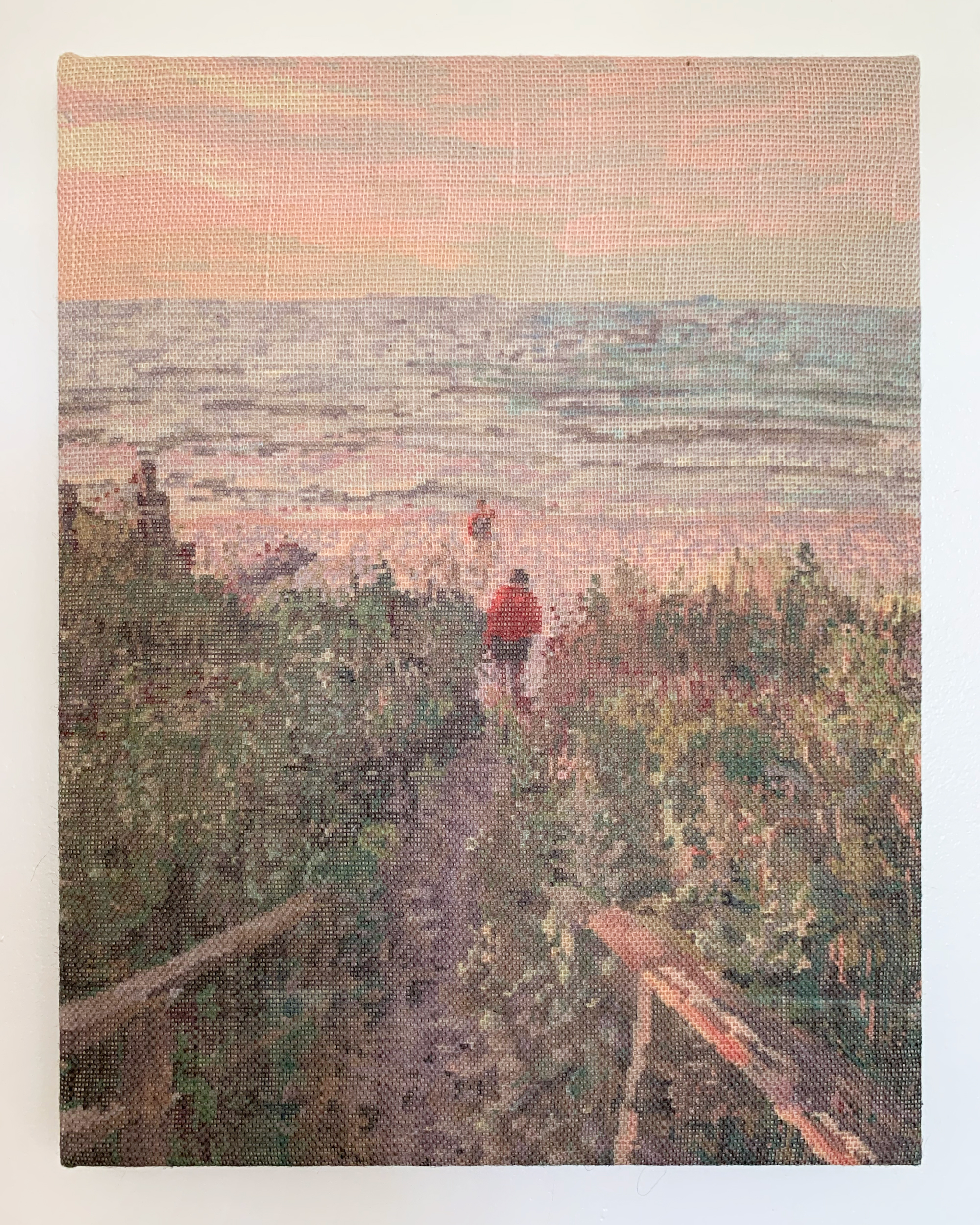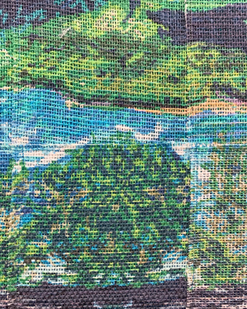 Inkjet on burlap, polyester thread