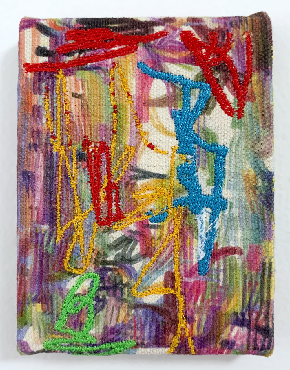 Inkjet and computerized embroidery on canvas